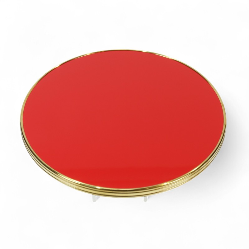 Ce plateau de table rond en stratifié couleur Rouge - cerclage laiton mouluré est adapté pour un usage aussi bien extérieur qu'intérieur pour les professionnels de la restauration. Tous nos plateaux de table VENDÔME sont fabriqués en Belgique et cerclés de façon artisanale en Région Parisienne. Sa finition brillante offre un effet miroir qui sublime son élégance et apporte une touche raffinée à vos espaces. Tous nos plateaux de table VENDÔME sont fabriqués en Belgique et cerclés de façon artisanale en Région Parisienne.