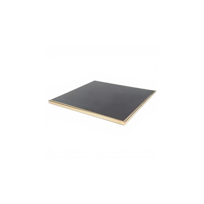 Nous proposons ici le plateau de table de terrasse (ou intérieur) carré noir allie modernité et élégance. Le cadre en laiton donne un style élégant et raffiné. Ce plateau à l'apparence délicate et travaillée est spécialement conçu pour un usage en intérieur (salle de restaurant, café, hôtel) ou en extérieur (terrasse de restaurant). Grâce au revêtement en stratifié, ce plateau de table est résistant aux tâches et aux rayures. Associez ce plateau de table à l'un des pieds de table présents dans notre gamme pour obtenir une table chic et de qualité.
